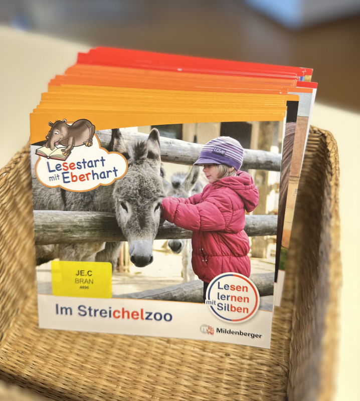 Gerade zum Lesestart eignen sich kurze, kindgerechte Texte mit Silbentrenner besonders gut. Die Kinder lieben die kleinen Erstlesehefte mit Eberhart, dem sympathischen Tapir. Es gibt die Hefte neu in unserer Bibliothek! Sie sind nach verschiedenen Lesestufen aufgebaut, denn der passende Schwierigkeitsgrad motiviert die Kinder und fördert den Spaß am Lesen von Anfang an. Dieser steigert sich von Lesestufe zu Lesestufe von kurzen einfachen Sätzen zu zusammenhängenden Geschichten.